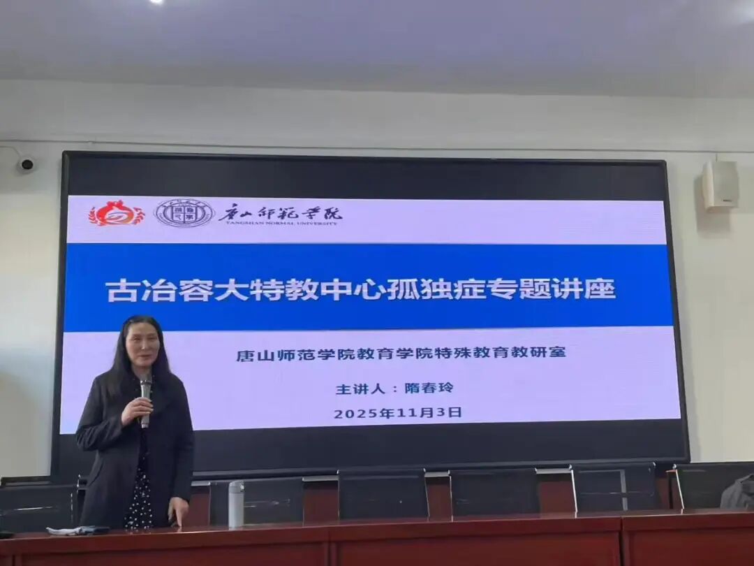 在唐山容大特教中心揭牌“唐山市孤独症教育康复培训中心”之际,隋春玲教授开展专题培训与教研指导,为特教教师专业发展提供有力支持。隋教授围绕孤独症谱系特征、认知误区及行为支持策略等核心内容进行系统讲解,将前沿理论与教学实践相结合,帮助教师构建完整的知识体系。在教学观摩环节,她深入课堂观察教学实况,针对课程设计提出专业建议,重点关注个别化支持策略的实施效果。