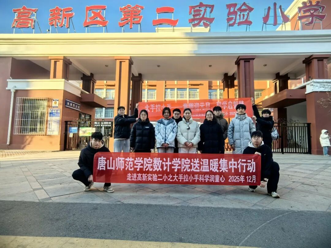为响应院校“送温暖”集中行动号召,2025年12月31日,唐山师范学院数学与计算科学学院红数苗志愿服务队走进高新实验二小,开展“大手拉小手——童趣迎元旦,科学启智慧”主题科普活动,将科学知识与温暖陪伴融入孩子们的元旦假期,用实际行动践行高校志愿服务的责任与担当。