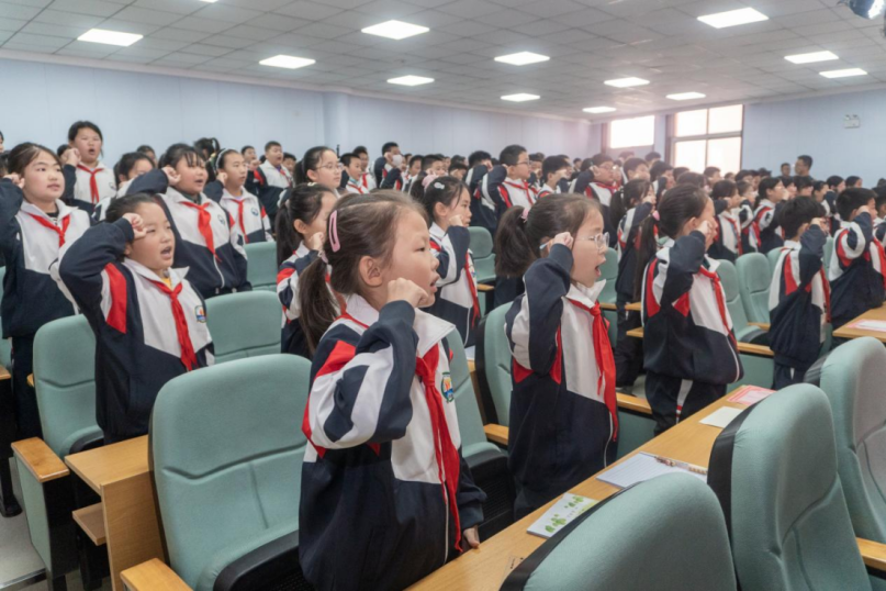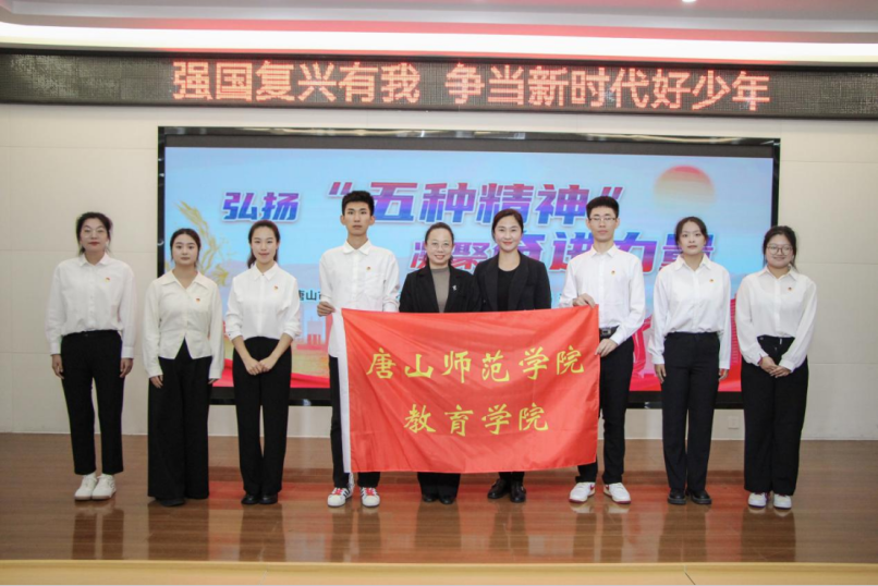 值此中国少年先锋队建队76周年之际,一堂别开生面的“大思政课”在迁西县实验小学生动开讲。10月13日,唐山师范学院教育学院精心组织本科生与首届研究生代表,携手走进迁西县实验小学,以“唐山五种精神”为主题,为现场200余名、线上观看直播的1500余名学生带来了一场深刻而富有感染力的精神洗礼。唐山师范学院教育学院党委副书记董慧彬、分团委书记贾然;迁西县教育局、团县委相关领导和迁西县实验小学相关领导共同参与了本次活动。