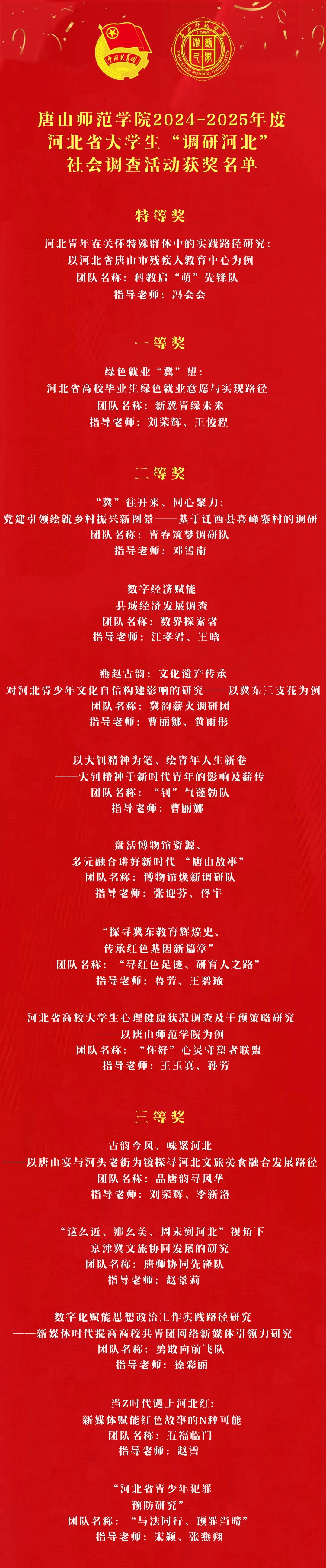 近日,共青团河北省委、河北省社会科学院与河北省学生联合会联合发布了2024—2025年度河北省大学生“调研河北”社会调查活动的最终评定结果。