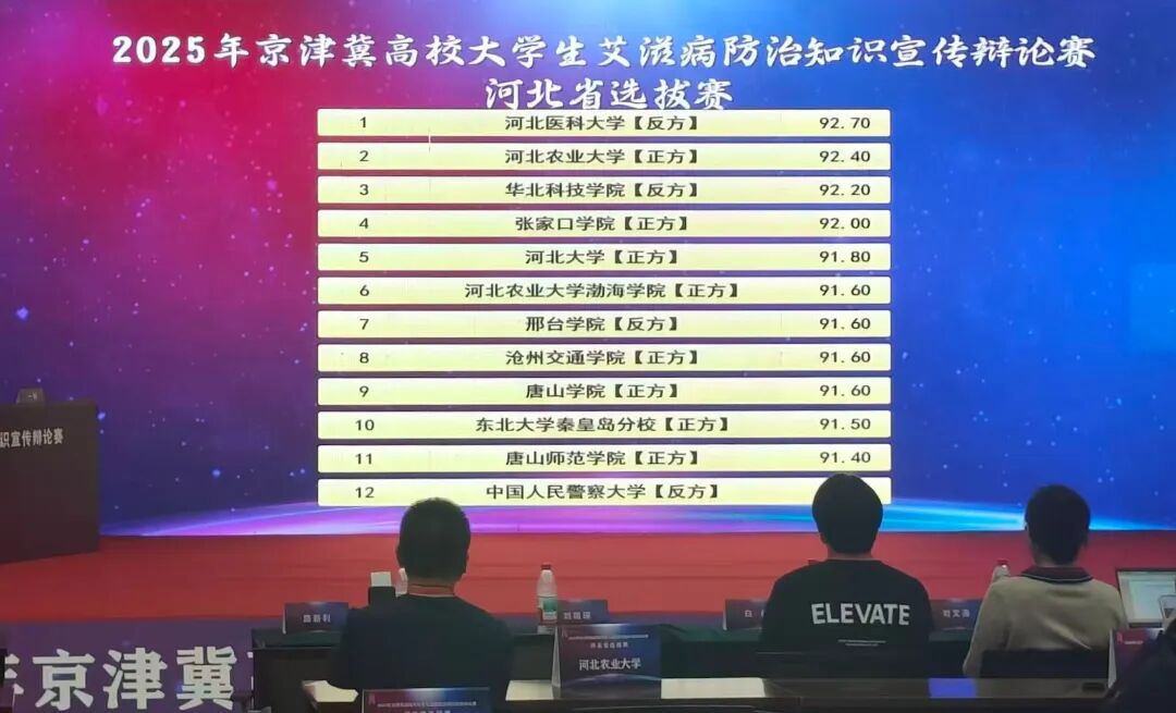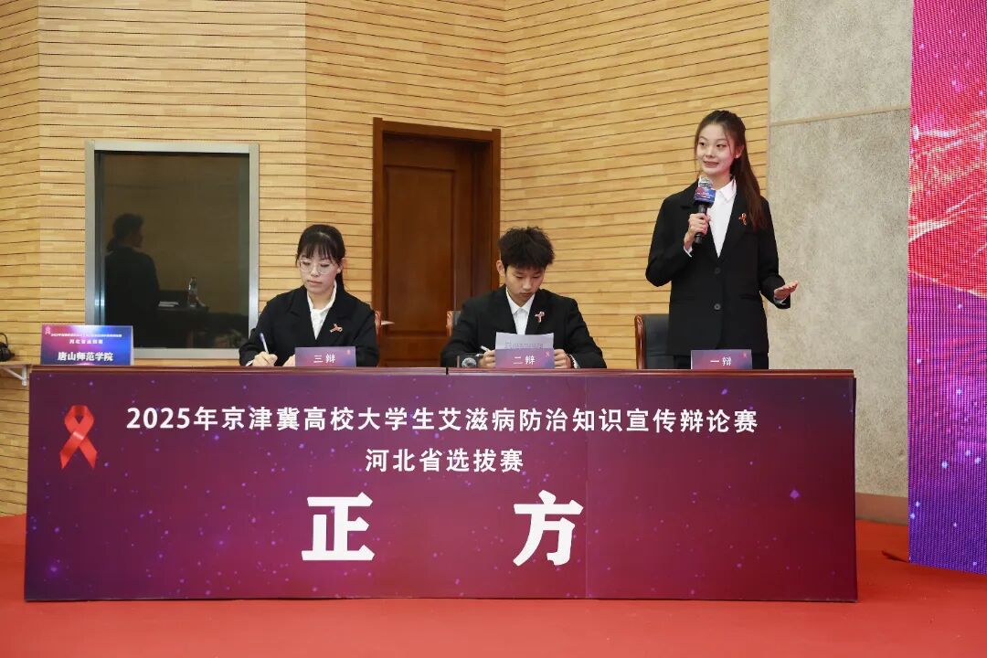 11月8日,由河北省防艾办主办的“2025年京津冀高校大学生艾滋病防治知识宣传辩论赛”河北省选拔赛圆满落幕。唐山师范学院辩论队凭借扎实的专业知识、严谨的逻辑思维和出色的临场表现,在全省高校中脱颖而出,荣获河北省三等奖,展现了我校共青团工作的育人成效。